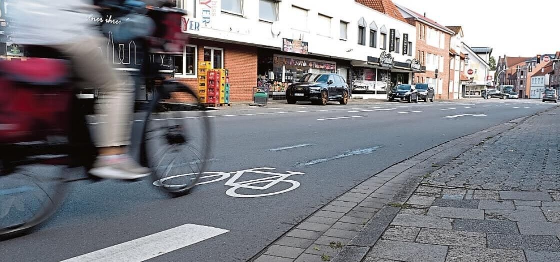 Und jetzt? Auf der Löninger Straße enden die Radschutzstreifen in beide Richtungen im Nichts. © Friedrich Niemeyer